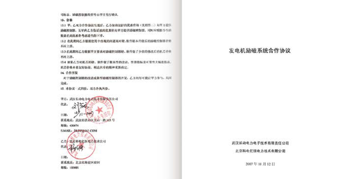 武漢長動電力電子技術有限責任公司發電機勵磁系統合作協議書