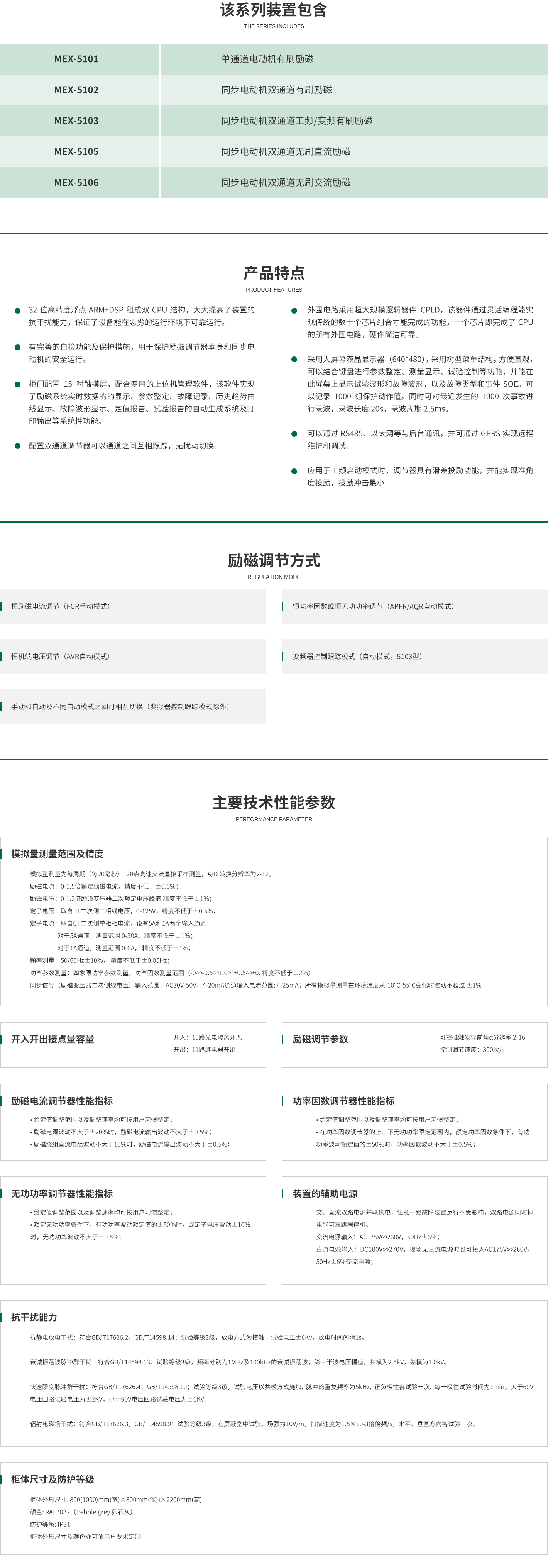 MEX-5100系列同步電動機微機勵磁調節器是北京科電億恒電力技術有限公司研制的新一代微機勵磁調節器。它具有完善的調節、控制及限制保護功能,廣泛與石化、鋼鐵、制氧、水利泵站、輸油管道、礦山等各行各業的大型驅動電機配套應用。