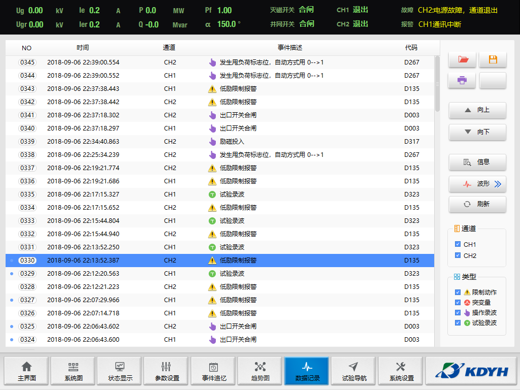 1000 組故障錄波,記錄故障前 10 秒故障后 10 秒的運行數據;1000 組事件記錄;長達 30 天的歷時趨勢記錄