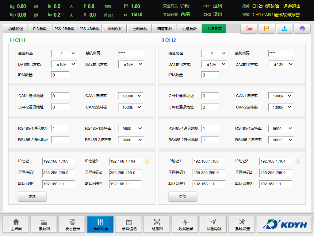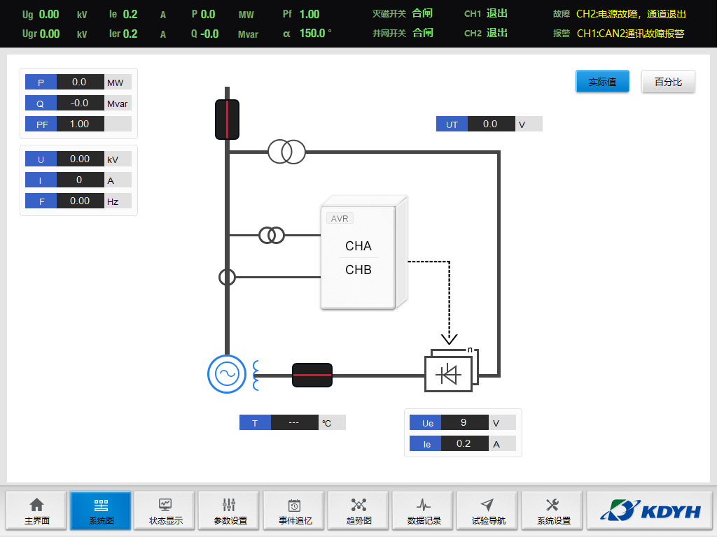 每一個控制通道具備獨立的彩色液晶 + 專利按鍵組成的人機對話系統。同時,柜門安裝 15 英寸工業觸摸屏配合專利界面方便勵磁系統操作、監視和維護